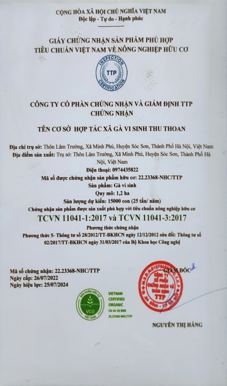 Hợp tác xã gà vi sinh Thu Thoan : 22.23368-NHC/TTP